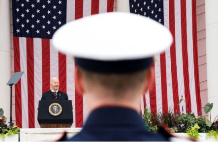 当地时刻5月27日,拜登在阿灵顿国度义冢参预殉难将士转头日联系作为并发表谈话。图源:好意思媒