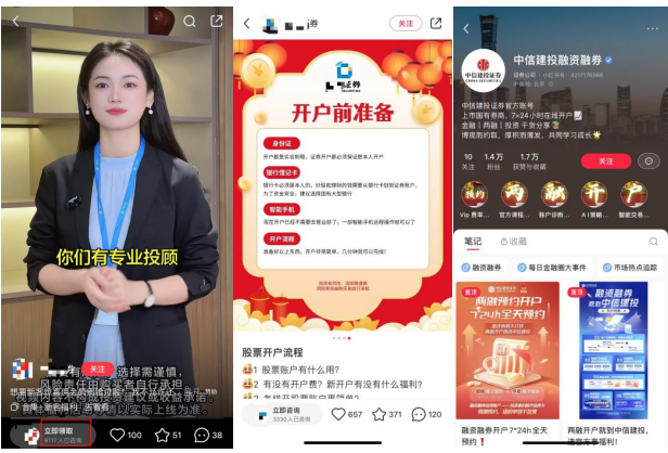券商中国记者在多家券商的官方小红书账号上看到,一些券商发布的开户指引等投教内容,得到不俗的响应。不少投资者在酌量区留言连系若何开户、佣金费率等问题。一些券商在开户相关的小红书条记左下角设有“立即照拂”的客服迷惑,已照拂用户数多达数千东说念主。